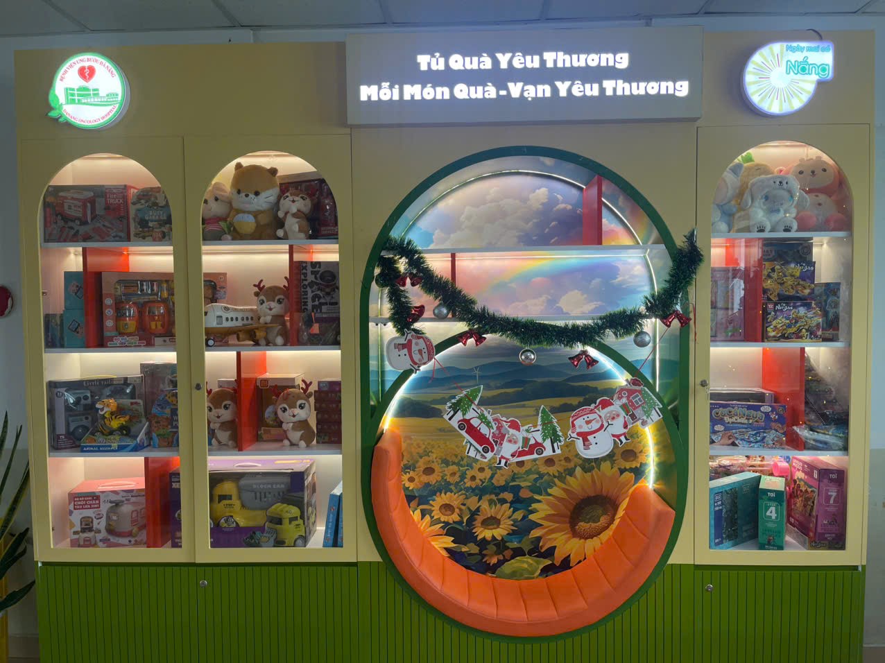 Với mong muốn đồng hành cùng các con bằng những điều thật đẹp và thật dịu dàng, Bệnh viện đã triển khai mô hình “Tích điểm đổi quà – Tiếp sức điều trị”, tạo nên Tủ quà yêu thương – một góc nhỏ ấm áp dành riêng cho bệnh nhi. Toàn bộ kinh phí xây dựng, trang trí và duy trì hoạt động của Tủ quà đều do Quỹ Ngày Mai Có Nắng tài trợ.